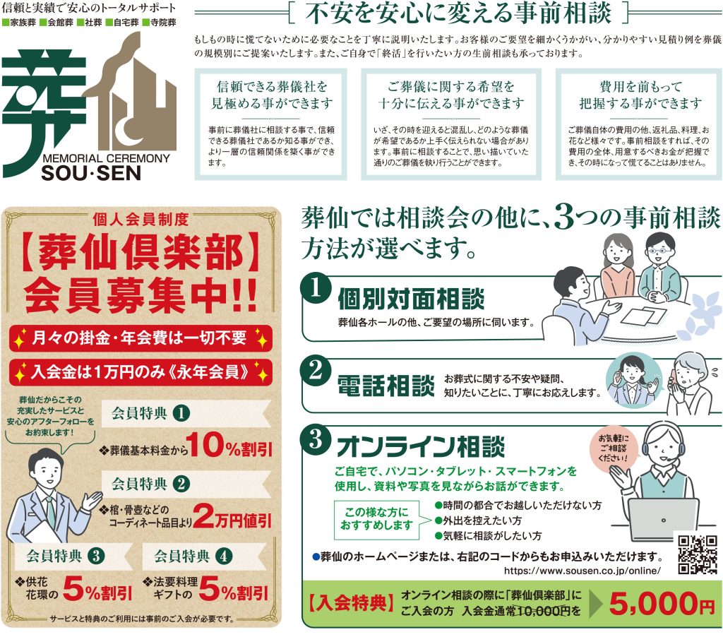 相談会当日に来場し入会された方には、葬仙倶楽部入会特典があります。
